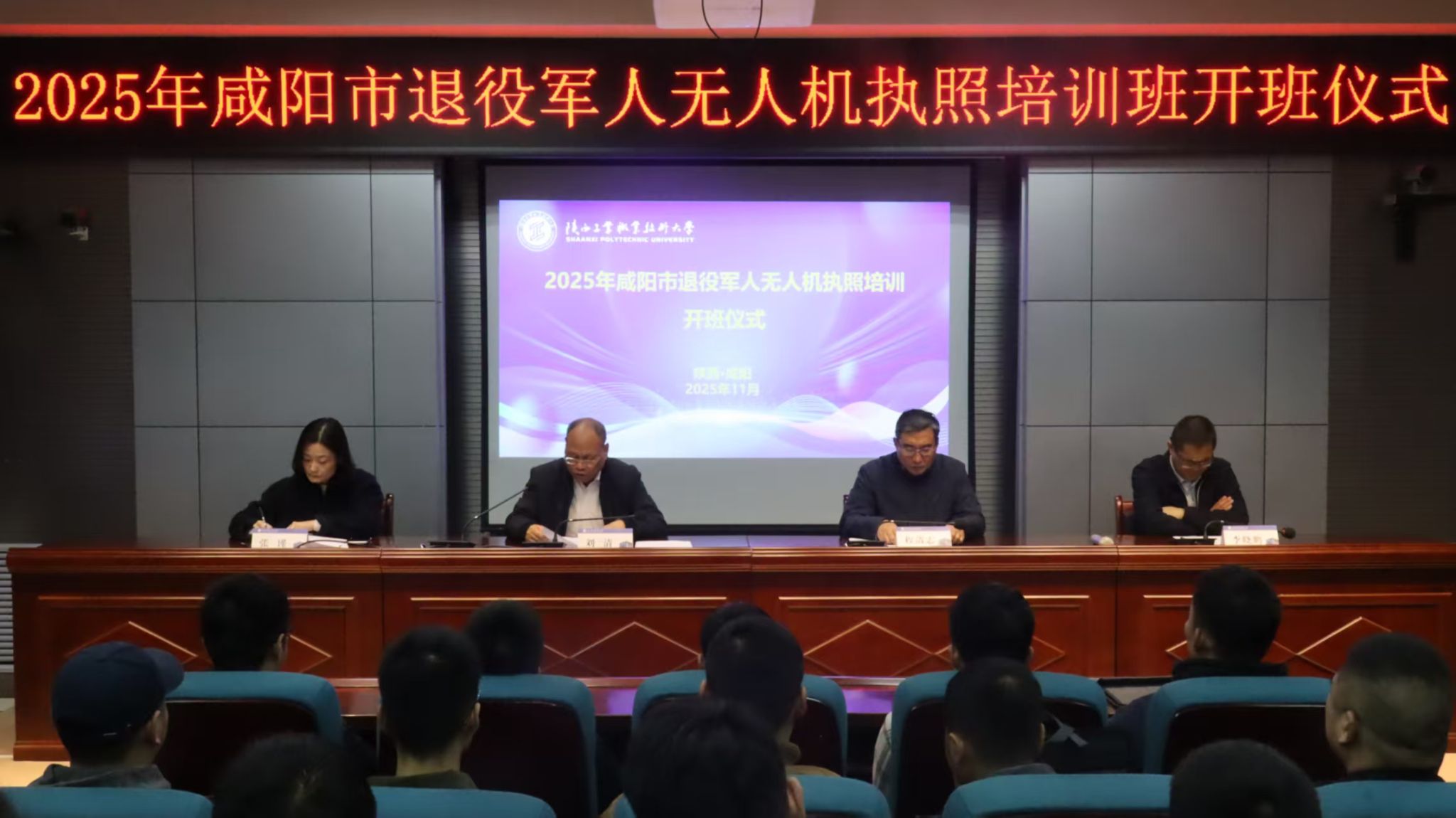 11月6日,由咸阳市退役军人事务局主办、陕西工业职业技术大学承办的2025年咸阳市退役军人无人机执照培训班在我校正式启动。咸阳市退役军人事务局副局长程清志、就业创业科科长张瑾,我校副校长刘清、航空工程学院院长李晓鹏,培训班管理人员、退役军人学员共四十余人出席开班仪式。