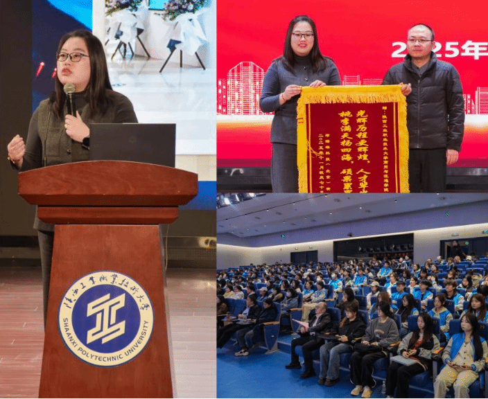 讲座结束后,王引还代表布瑞琳科技(北京)有限公司向母校赠送锦旗,锦旗上“光辉历程更辉煌,人才辈出代代强,桃李满天扬四海,硕果累累振中华”的字样,既饱含着她对母校多年培养的深厚感激之情,也承载着对母校未来发展的美好祝愿。