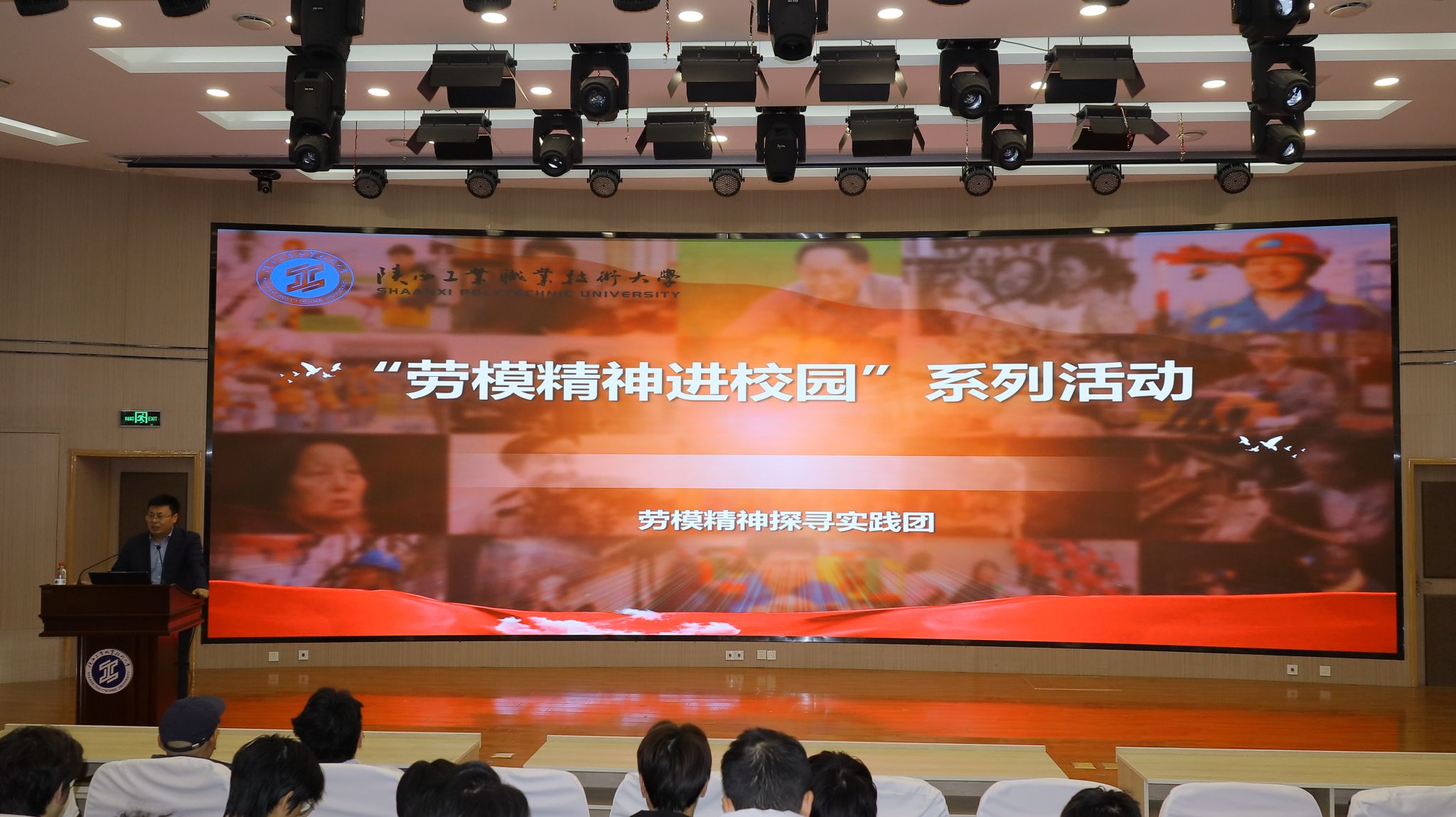 为深入学习贯彻习近平总书记关于弘扬劳模精神、劳动精神、工匠精神的重要论述,引导青年学子树立“劳动最光荣、劳动最崇高、劳动最伟大、劳动最美丽”的价值观。近日,我校劳模精神探寻实践团邀请陕西重型汽车有限公司劳动模范朱波在学术会堂开展题为“匠心筑梦 实干建功”的宣讲活动,实践团成员及师生代表共 300 余人参加。