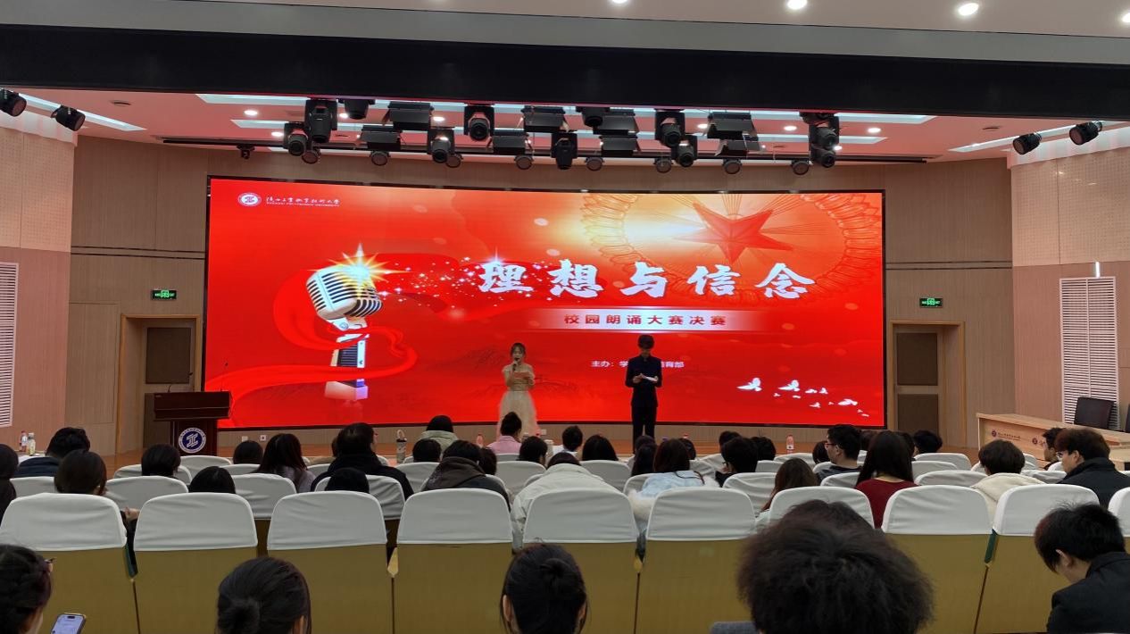 为丰富校园文化生活,厚植青年学子家国情怀,选拔全国第八届大学生艺术展演参赛队伍,12月30日下午,由学工部、美育部举办的“理想与信念”校园朗诵大赛决赛在学术会堂举行,各学院参赛指导教师和学生代表300余人参加了本场比赛。
