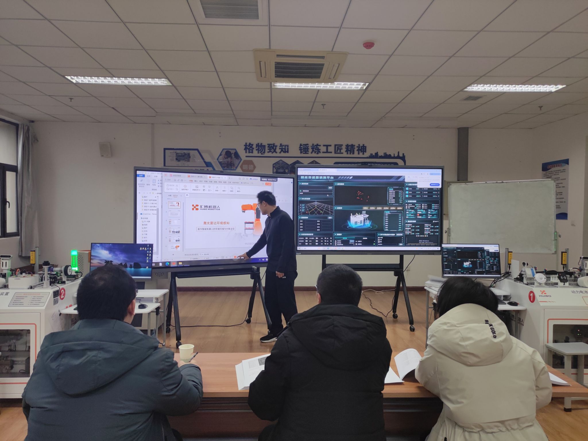 本次展示活动采用“双模块抽选、限时实操展示”的考核形式,每位展示教师从“典型工业传感器感知应用”与“人工智能传感器数据采集”两大模块中各随机抽取一个项目,在有限的准备时间内完成设备调试,并进行不超过20分钟的实操教学展示。教师们围绕接触式限位检测、激光雷达环境感知、图像识别、振动检测等具体项目,进行了规范、娴熟的操作与清晰、准确的讲解。由学院组织的校内评委,从安全作业、操作规范、表述准确、技能熟练等四个维度进行现场打分,最终成绩将作为教师承担相关理论与实践课程教学任务的重要依据。评委们高度赞扬教师展现出的良好精神风貌,同时针对技能操作、规范管理等方面的不足提出了改进意见和建议。
