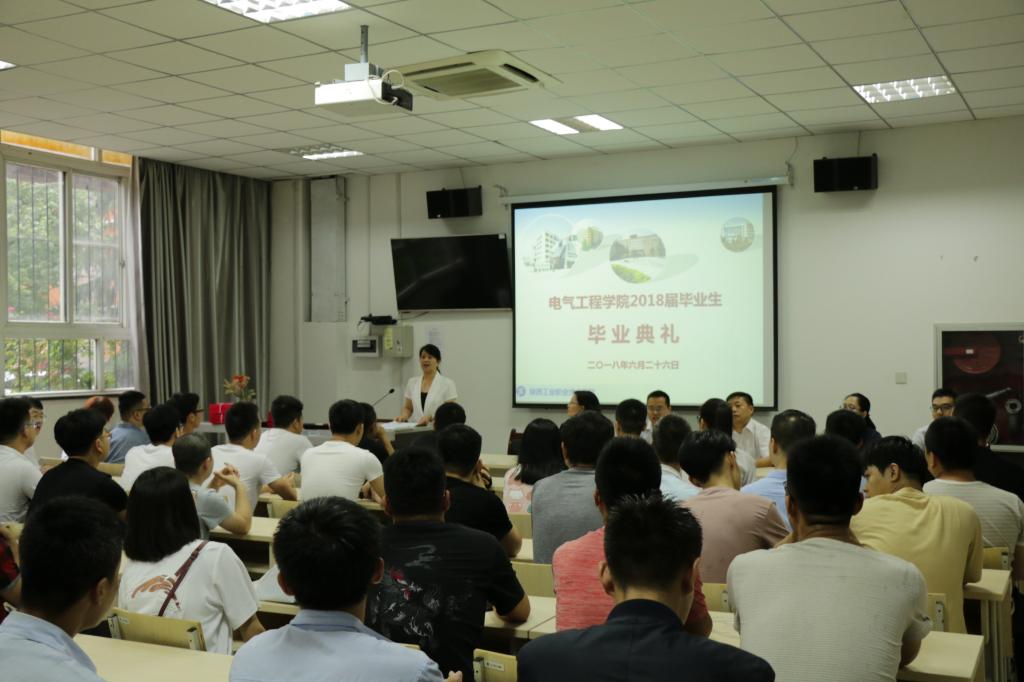6月26日上午,电气工程学院“2018届学生毕业典礼及毕业证发放仪式”在行知楼A欧姆龙教室举行。电气工程学院党总支书记杜云、副院长夏东盛以及毕业班班主任代表、辅导员等出席典礼,毕业典礼由党总支书记杜云主持。