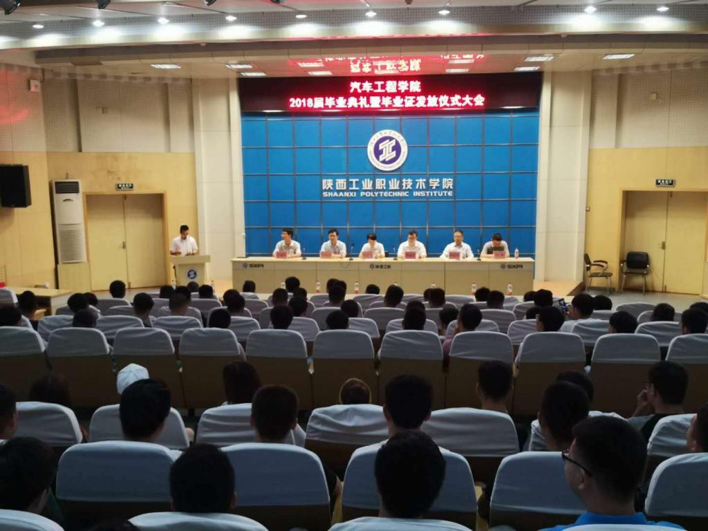 6月26日下午,汽车工程学院2018届毕业典礼暨毕业证发放仪式在学术会堂举行。汽车工程学院院长李选芒党总支书记高亚宁、副院长陈昊平、教学办主任何奇彦、学工办主任刘冽、实训中心主任许冀阳、学院教师代表、辅导员及2018届毕业生近300余人参加典礼。典礼由汽车工程学院党总支书记高亚宁主持。