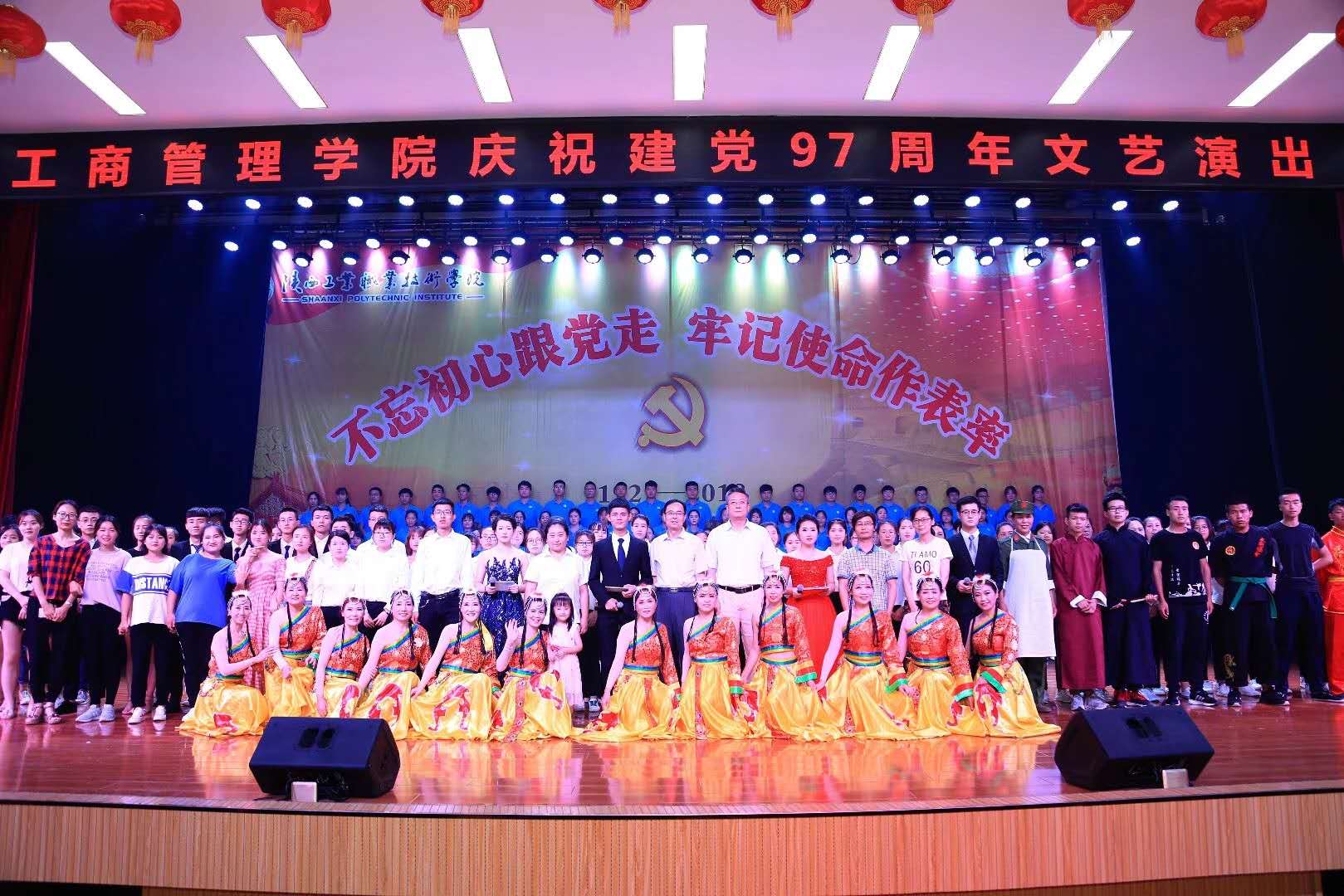 此次文艺演出均由工商学院老师和学生共同策划,实现了师生同台庆七一,为党的生日献上了最美好的祝福。演出结束后,与会领导与参演师生合影留念,并给予演出高度评价。