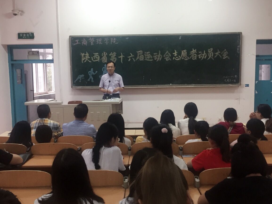 7月11日下午,工商管理学院在崇文西楼101教室,召开了陕西省第十六届运动会志愿者动员大会,工商学院党总支书记孙继龙、学工办主任杜娟、志愿者负责教师罗峰、侯建朝以及全体志愿者共计150余人参加了大会,会议由学工办主任杜娟主持。