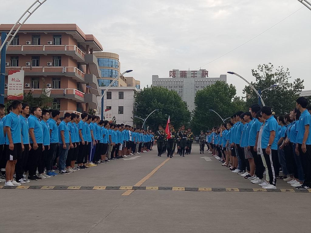 6时50分,国旗护卫队迈着整齐的步伐,护送五星红旗步入国旗台;伴着激昂的国歌,五星红旗冉冉升起,飘扬在学院上空,全体师生神情庄严,面对国旗行注目礼。