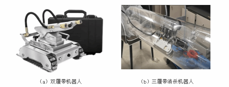 对复合型移动机器人的总体设计、机械臂结构与控制、机器视觉与目标识别、智能感知多信息融合控制、底盘自适应变形等技术进行攻关。针对城市管网系统清洁需求,成功研发管网探测及消杀机器人,用于城市管网公共服务区域的管道探测、清洁及管道内部的消毒杀菌作业。本团队成功实现新一代管网探测及消杀机器人产品开展研发与样机试制,如图1所示。