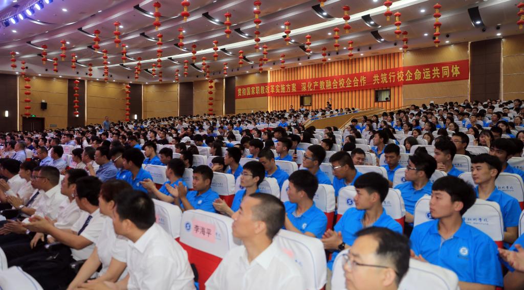 机械工业教育发展中心主任助理王志强,陕西省教育厅副巡视员梁爱芳,咸阳市人民政府副市长罗军、市政府副秘书长白梓辰,陕西省职教学会副会长、秘书长王晓江,西咸新区管委会主任助理王盛、新区人社民政局副局长赵宏庆,咸阳市人才交流中心主任别立华、市高新区招商局局长王宁,高陵区人才交流服务中心副主任李英,西安经开区工业园运营管理中心平台建设主管傅军,我院党委书记惠朝阳,院长张晓云,党委副书记、副院长刘永亮,党委副书记贺天柱,纪委书记康强,副院长梅创社、刘清及企业、师生代表1100余人参加大会,刘永亮同志主持会议。