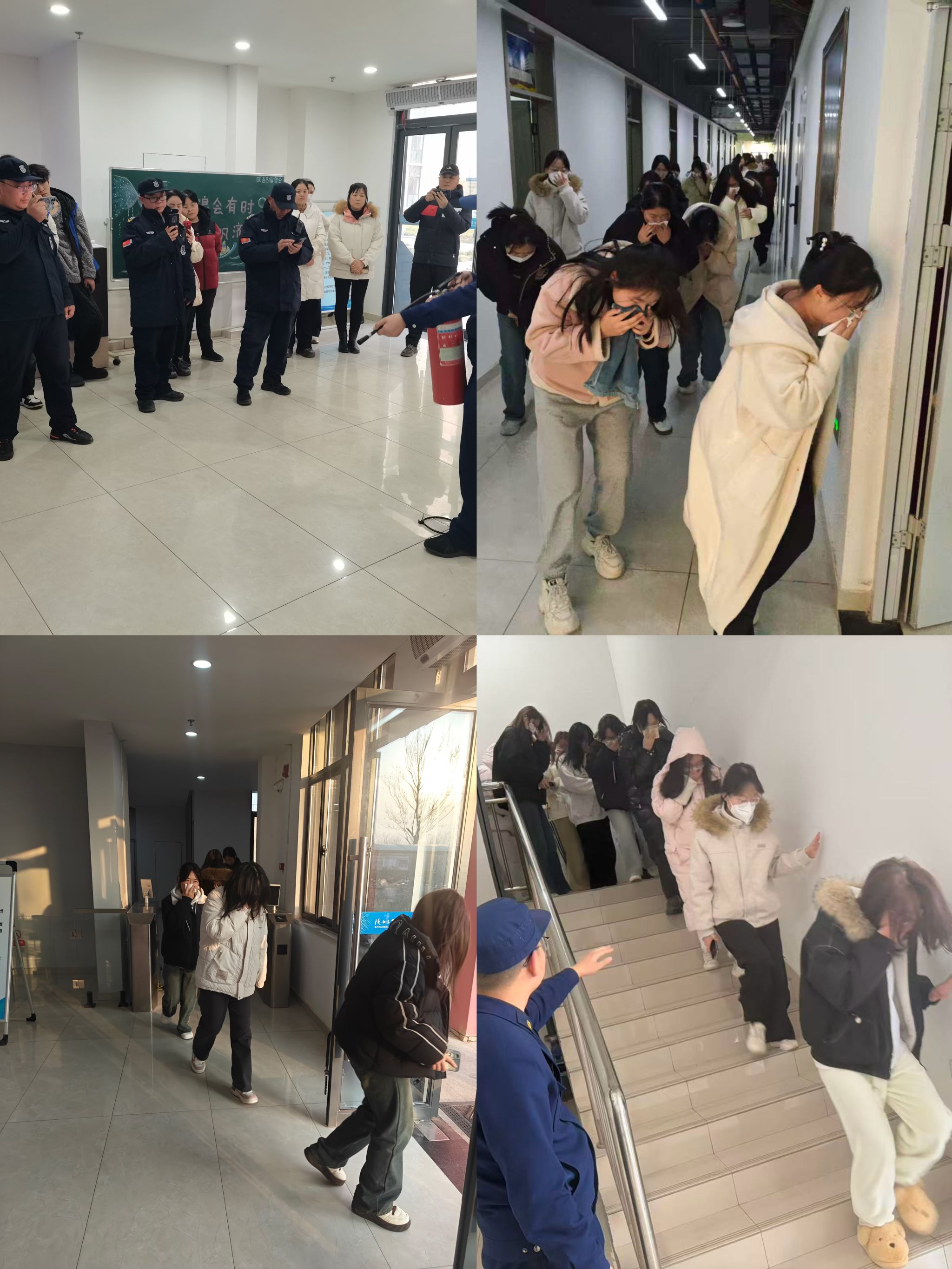 下午16时30分,演练正式启动,保卫处副处长王海虎宣布开始,马庄消防所消防员到场指导。演练模拟成善A公寓楼2层某宿舍因电器使用不当引发火灾,火势迅速蔓延并产生浓烟。警报响起后,同学们沉着冷静,在宿舍管理员和值班人员的引导下,严格遵守“捂鼻、弯腰、靠右行”的逃生要求,避开烟雾区域,沿预定疏散路线迅速撤离至公寓楼外指定集结点。