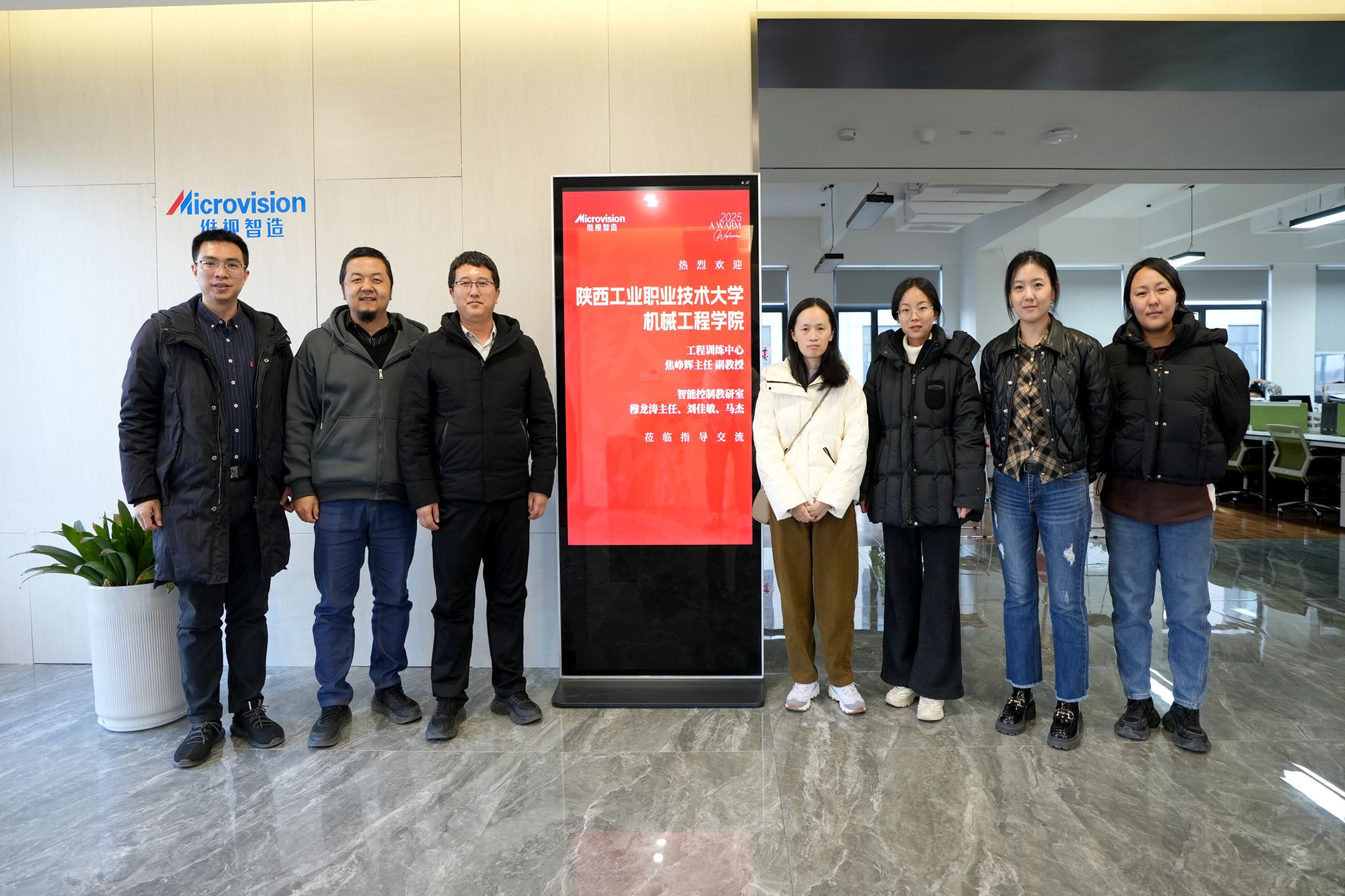 12月24日,为精准对接智能制造产业发展需求,优化人才培养体系,陕西工业职业技术大学机械工程学院工程训练中心主任焦峥辉、智能控制教研室主任穆龙涛博士、教研室教师刘佳敏博士及马杰一行,赴西安高新区陕西维视智造科技股份有限公司开展专项企业调研。维视智造技术总监毛毅刚、教育总监李明睿、经理郭娟等企业代表热情接待,双方围绕机器视觉技术产业发展、岗位人才需求及智能视觉技术实训室建设等核心议题展开深度交流。