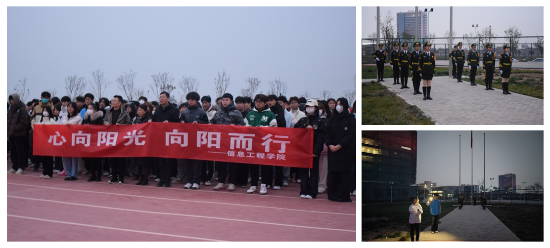 为深入落实心理育人成效,培养学生积极乐观、坚韧不拔的心理品质,大力推进心理健康教育,2024 年 12 月 9 日清晨,信息工程学院开展了以“心向阳光 向阳而行”为主题的国旗下成长主题教育活动。信息学院党总支书记王伟、党总支副书记郭新玲、学工办主任赵松、辅导员和学生代表300余人参加了本次活动。