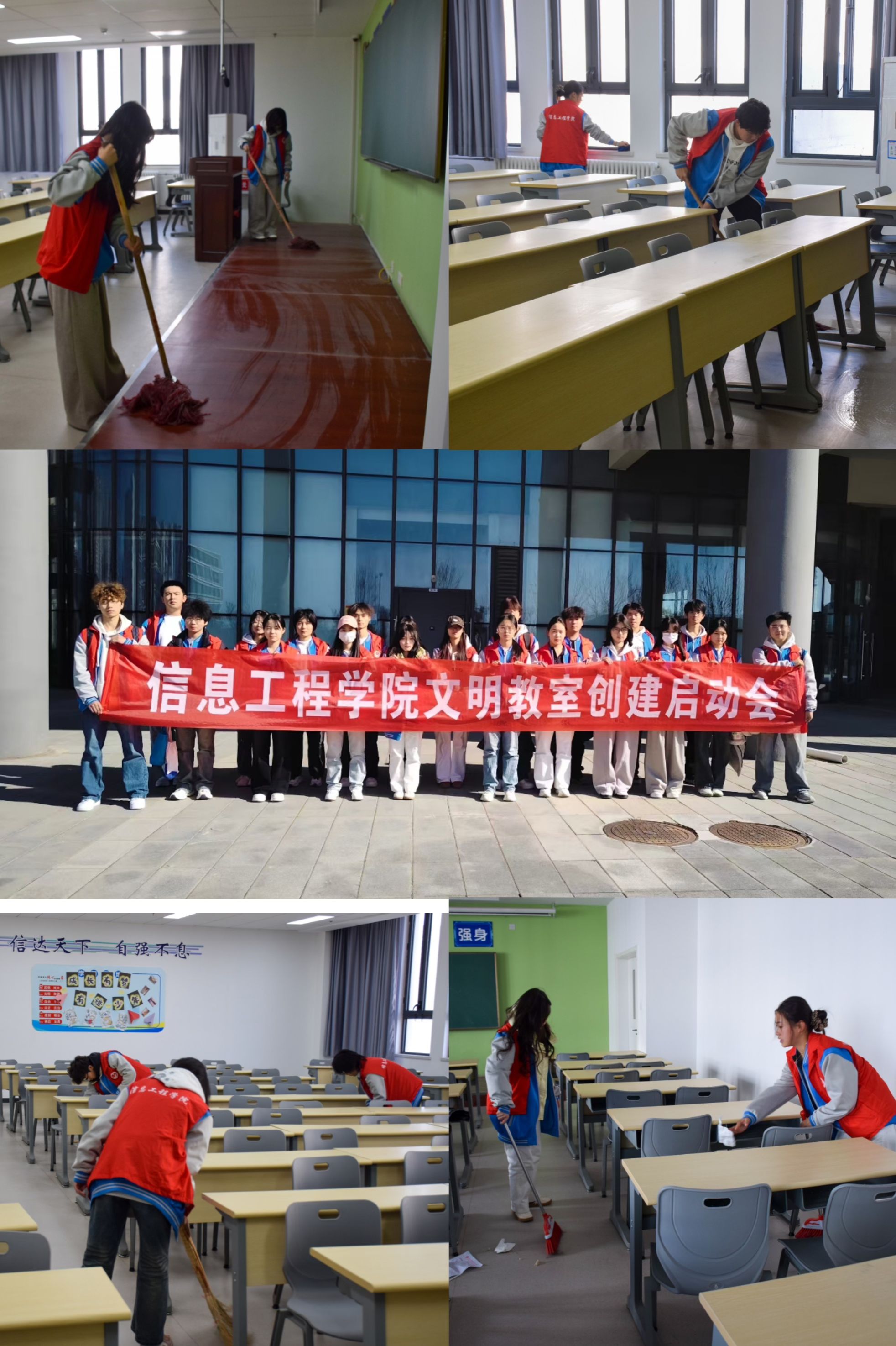 为深入贯彻落实立德树人根本任务,培育学生崇尚劳动、爱护环境的良好风尚,切实推进文明校园建设,11月19日,信息工程学院在崇理C楼开展了“文明教室”创建活动。本次活动由学院学生会牵头组织,吸引了包括学生会骨干成员、入党积极分子在内的20余名学生代表参与。
