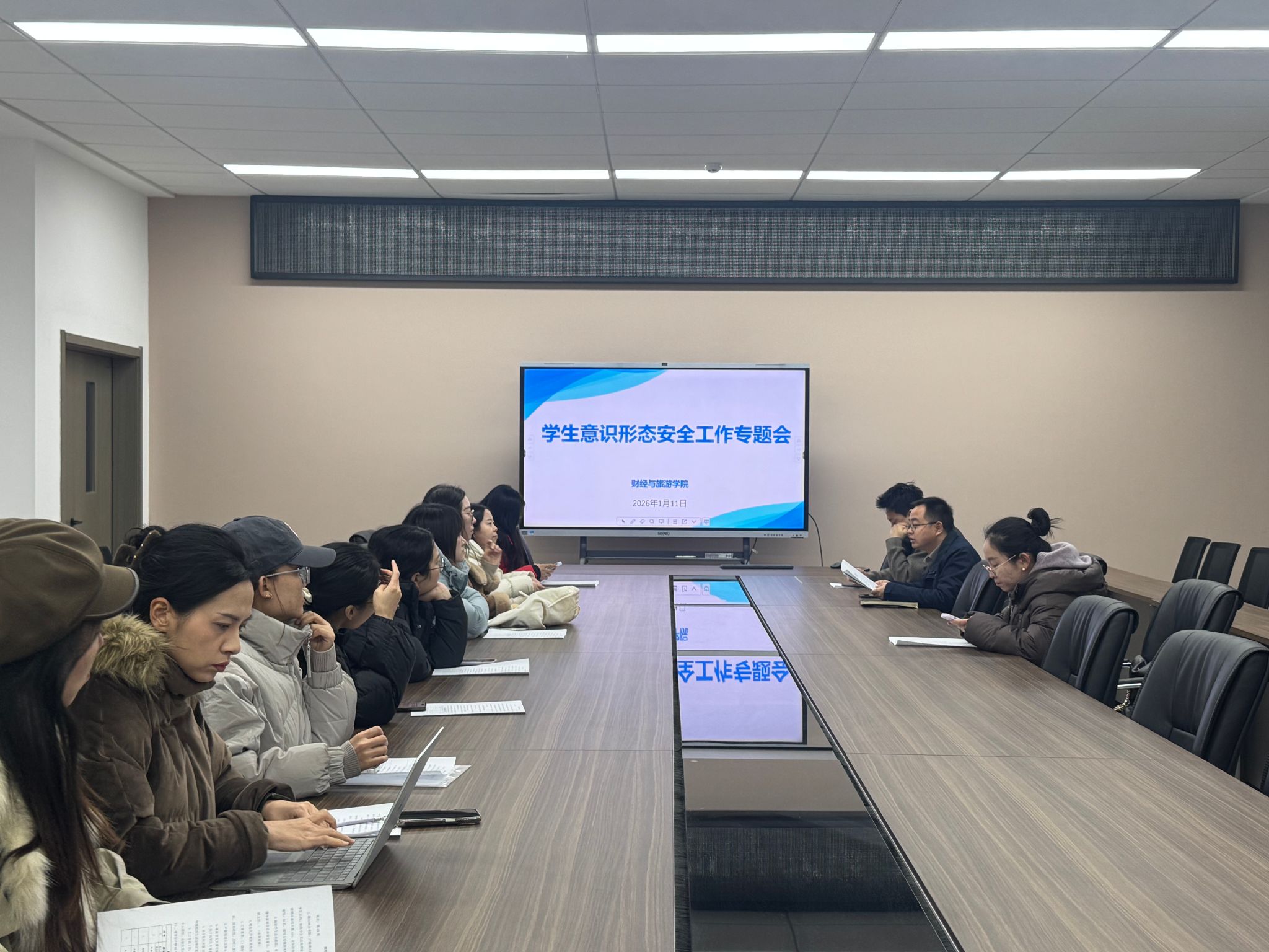 为深入贯彻落实学校关于意识形态工作的部署要求,切实筑牢学生工作领域意识形态安全防线,1月12日,财经财经与旅游学院组织全体辅导员、班主任在崇理D504会议室,开展学生意识形态安全工作专题会议。