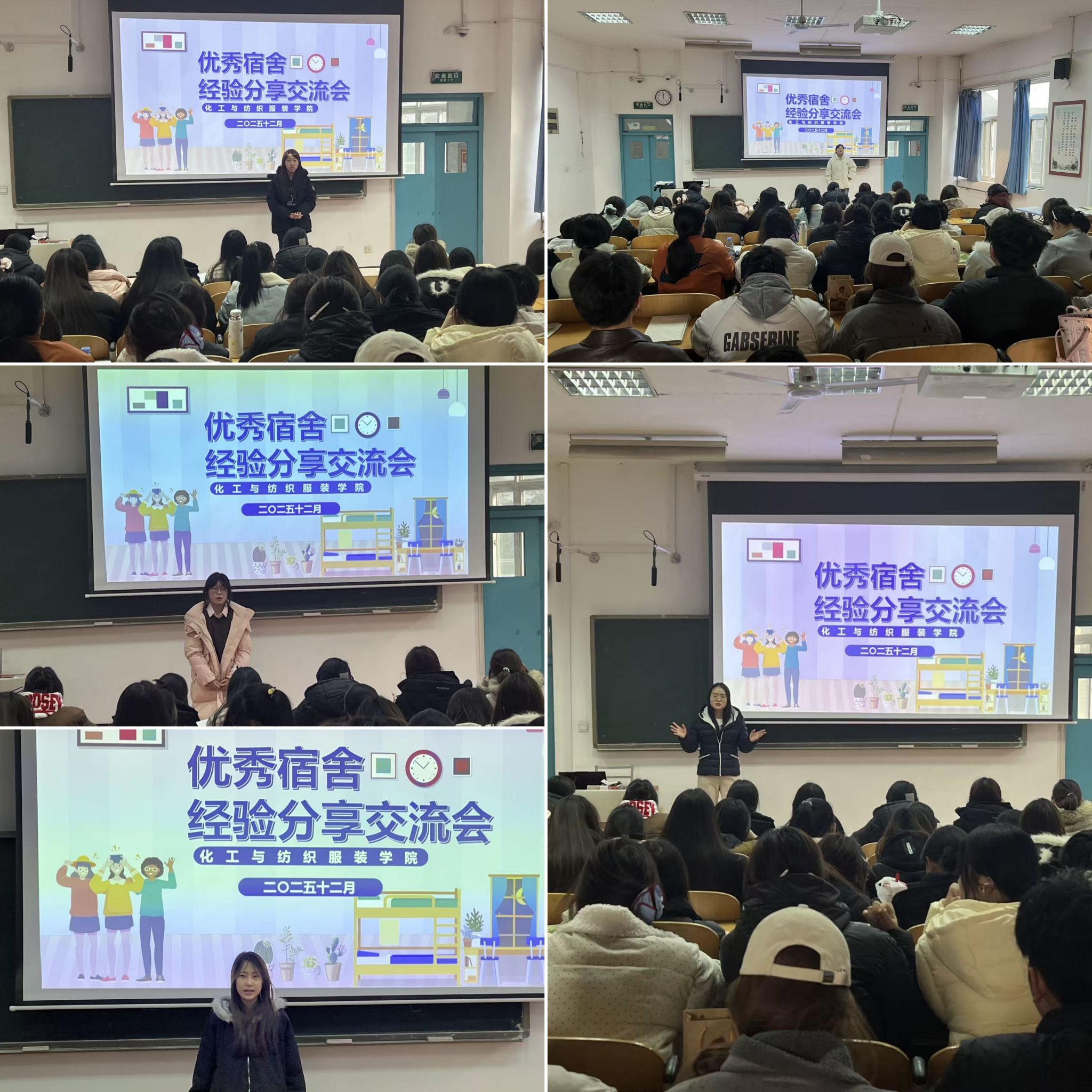分享会上,来自环境文明类“清风雅韵宿舍”、行为文明类“自律笃行宿舍”、精神文明类“书香涵雅宿舍”、安全文明类“平安共建宿舍”、优良学风类“博文精进宿舍”的10间优秀宿舍代表依次登台。代表们结合PPT展示,从宿舍卫生管理、文明行为养成、安全隐患防范、学风氛围营造、集体凝聚力建设等方面,分享了各自的宝贵经验:有的宿舍介绍了“分工轮岗+每周互评”的卫生保持机制,用细节打造“六净”居住环境;有的宿舍分享了“23:30 熄灯公约+静音学习时段”的自律做法,展现了文明相处的宿舍氛围;有的宿舍通过案例讲解,普及了违规电器识别、消防安全防护的实用知识;还有的宿舍分享了“学习小组+难题会诊+经验互传”的互助模式,展现了勤学向上的优良学风。