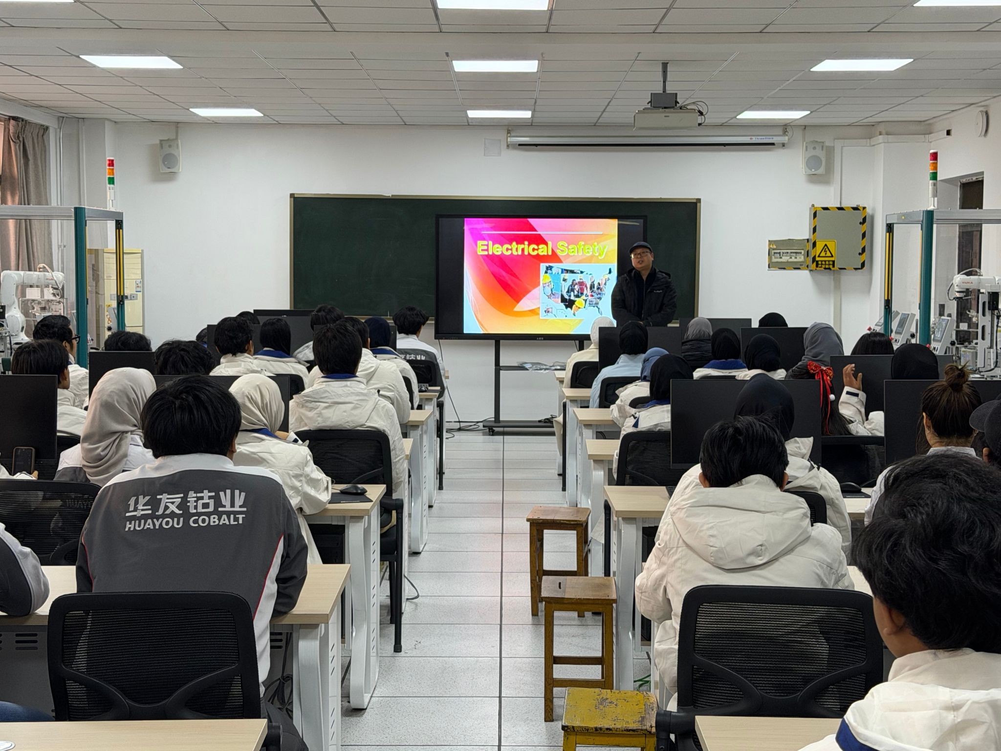 为切实增强留学生安全用电意识,规范实训操作流程,保障校园学习与生活安全,12月26日下午,国际教育学院联合电气工程学院,面向宁德时代、华友钴业国际订单班全体留学生组织开展了用电安全专题培训。