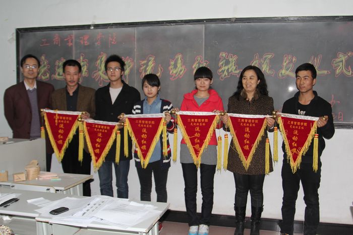 3月3日晚,在工商管理学院班主任例会上,会电1109、文秘1201、商英1101、会电1103、会电1202、会电1207六个班级被评为三风建设“先进班集体”并获得了“流动小红旗”。