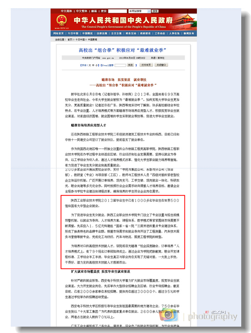 6月8日,中华人民共和国中央人民政府门户网站“中国要闻”栏目、中华人民共和国教育部门户网站、新华网、中国日报网等分别以《高校出组合拳积极应对最难就业季》和《瞄准市场,拓宽渠道,就业帮扶》为题,对我院2013...