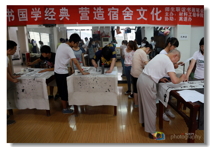 为进一步推进宿舍文化建设,营造继承传统、弘扬国学的浓厚学习气氛,6月8日下午,材料工程学院联合离退处在离退休教职工活动室举办了“书国学经典,营造宿舍文化”师生联谊书画笔会。