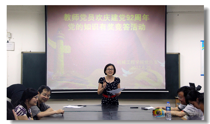 6月26日下午,机械工程学院教师党支部组织全体教师党员开展“欢庆党的92华诞”党的知识有奖竞答活动。