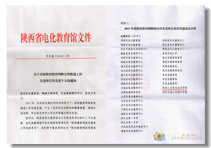 日前,根据陕西教育网《关于表彰陕西教育网络宣传报道工作先进单位及先进个人的通知》(陕电教[2014]3号)文件精神,我院被评为“2013年度陕西教育网新闻宣传先进单位”,宣传教育部被评为“2013年度陕西教育网络电视...
