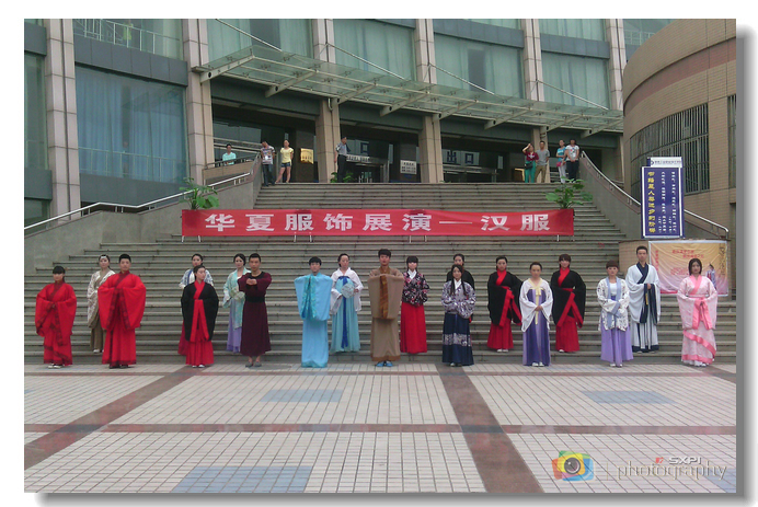 5月29日下午,伴随着清悦高洁、委婉动听的古筝配乐,由学院团委主办,服装工程学院承办的华夏服饰展演活动在图书馆前广场举行。