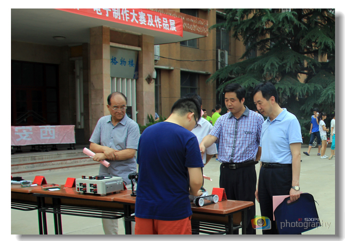 6月16日下午,我院第十二届“创意杯”电子作品展在格物楼前广场举行,副院长王津、团委书记闫军和承办本次活动的电气工程学院领导万可顺、卢庆林、殷锋社等现场观看学生作品,并与学生进行深入交流。