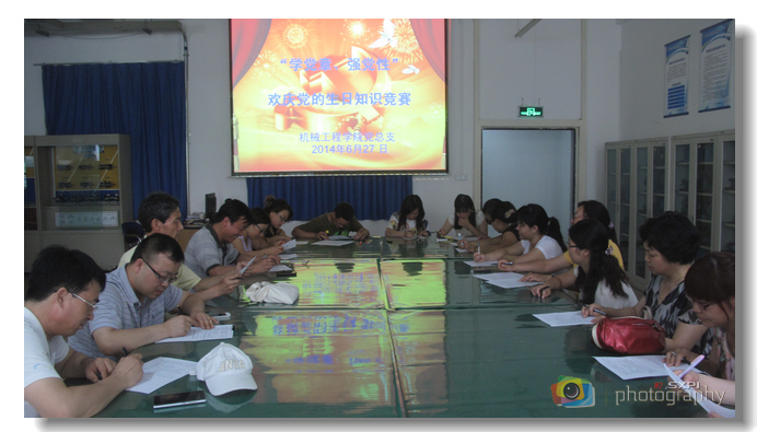 在中国共产党93华诞来临之际,6月27日下午,机械工程学院党总支周密策划、精心筹备,在全体教职工党员中组织开展了“学党章、强党性”欢庆党的生日知识竞赛活动,用实际行动为党的生日献礼。