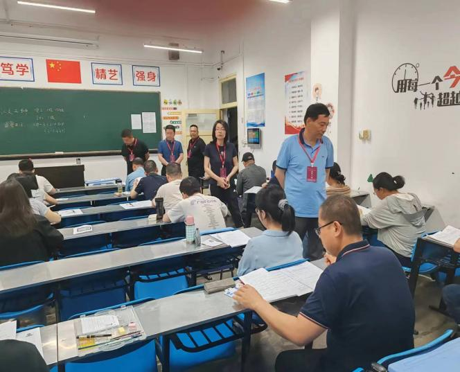 第一批职业技能等级认定涉及工种、级别多,包括本校教师和社会人员,由继续教育与培训学院组织理论考试,电气工程学院、机械工程学院、材料工程学院、财经与旅游学院组织实操认定。为确保本次认定工作操作规范,从考场布置、实操安排、考评员配备、试题管理、考务过程管理等方面按照咸阳市人力资源和社会保障局相关要求实施。咸阳市人力资源和社会保障局副局长吕阿妮、职业能力建设科科长边磊、劳动技能鉴定服务中心主任李涛等一行7人对本次职业技能认定工作进行了全程的督导检查。特别是对焊工技师、高级技师的综合答辩环节进行深入的指导。同时,继续教育与培训学院院长闫军、技能管理科科长商序对各环节进行了全面的监督检查。