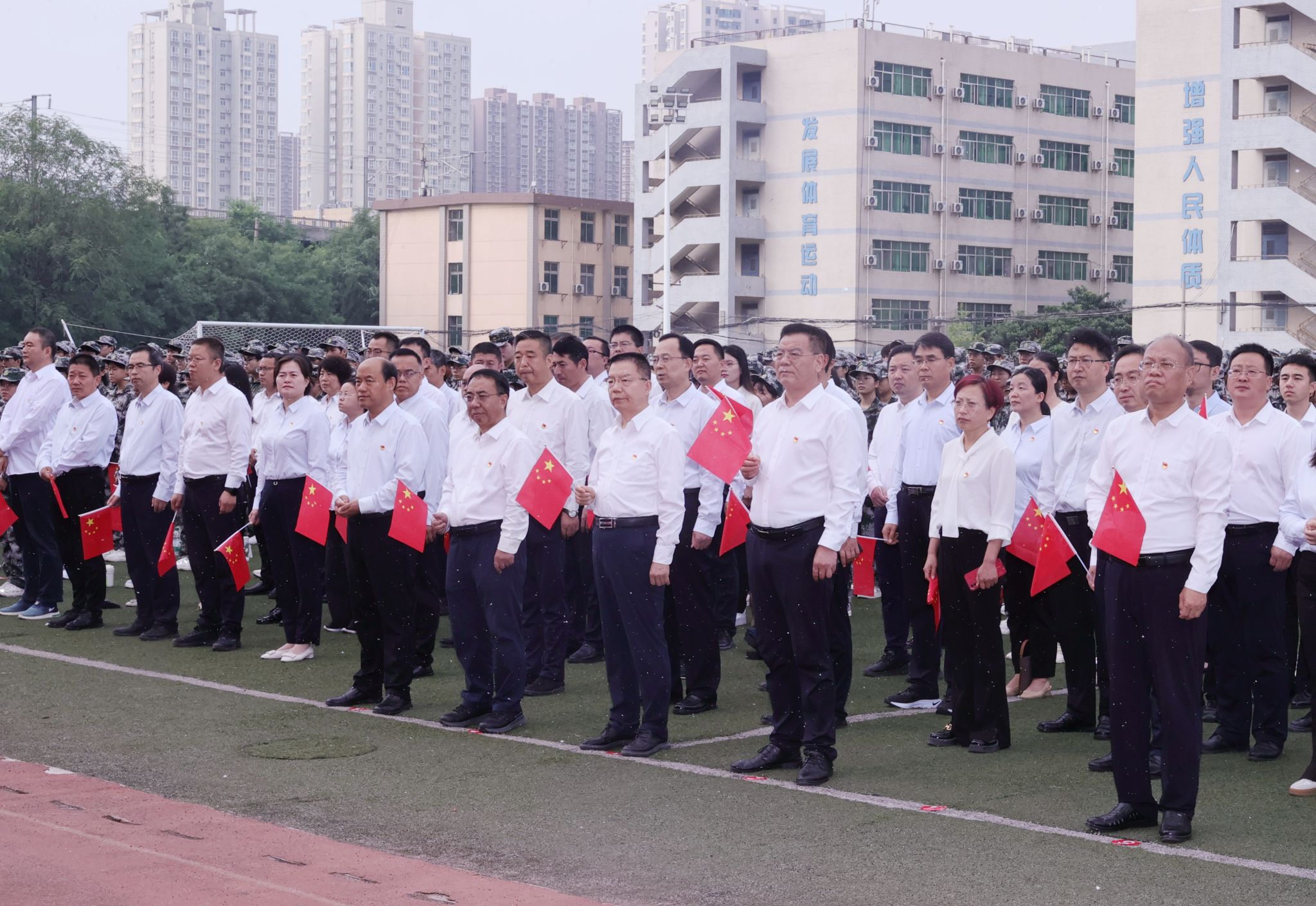 9月13日,我校在渭城校区操场举行天安门广场国旗迎接仪式。党委书记惠朝阳、校长刘永亮,校领导班子全体成员、处级干部、教师代表、2025级新生共同见证这庄严而神圣的时刻,仪式由党委副书记贺天柱主持。