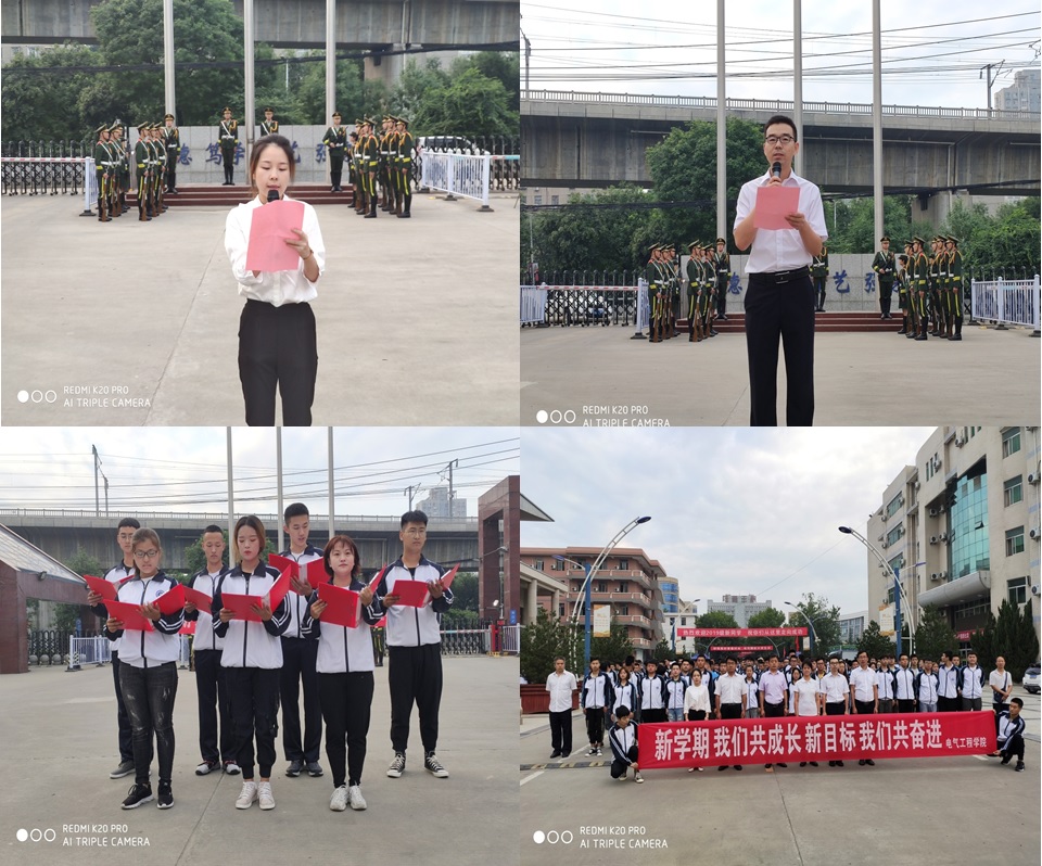 电气工程学院学工办主任张维以《不忘初心坚定理想》为题,要求同学们在新学期要有新气象、新作为、新使命、新担当,并对学生提出了三点希望:一是要坚定理想信念,追逐青春梦想;二是要练就过硬本领,夯实专业素质;三是要遵守校纪校规,争做阳光文明的大学生。辅导员李小燕以《奋斗的青春最美丽》为题发言,她号召广大青年应该在奋斗中释放青春激情、追逐青春理想,以青春之我、奋斗之我为民族复兴铺路架桥,为祖国建设添砖加瓦。最后18级学生代表进行了“奋进新时代 我与祖国共成长”集体朗诵,同学们以饱满的热情和强烈的爱国情怀歌颂了新中国成立70周年来的风雨兼程和沧桑巨变,呼吁同学们珍惜当下的美好生活,努力提升自己,与祖国共成长,走好自己的长征路。