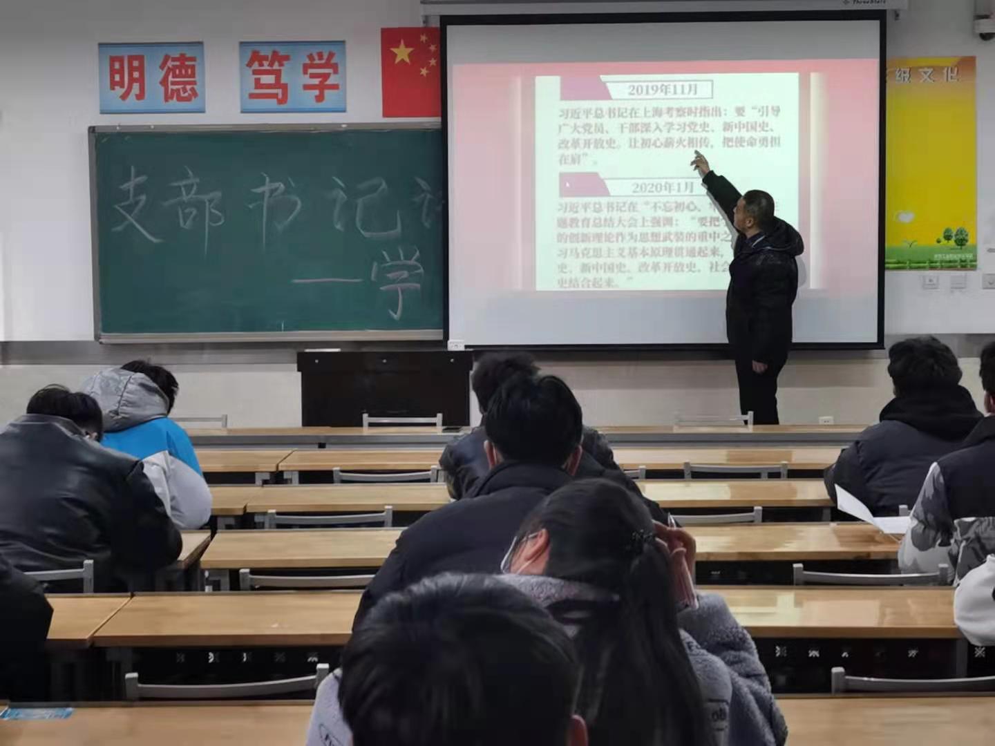 为深入推进“四史”学习教育,12月30日下午,航空学院学生工作第一党支部书记宋远社围绕“四史”学习教育内容,在崇明楼203教室为航空学院全体预备党员上了一堂主题鲜明、内容丰富的党课。
