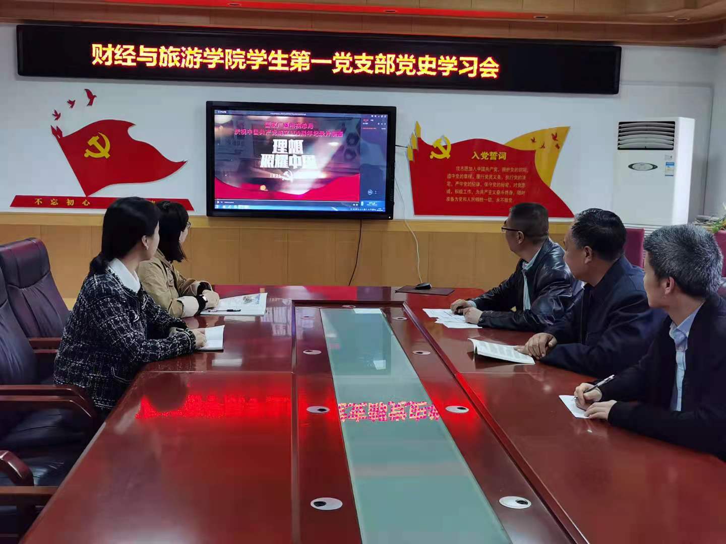 3月31日下午,财经与旅游学院党总支学生第一党支部组织全体教师党员、学生党员,开展了“学党史、强信念、跟党走”党史专题学习教育活动。分别对庆祝中国共产党成立100周年纪录片《理想照耀中国》、中国青年报刊文《走自己的道路》进行了学习。