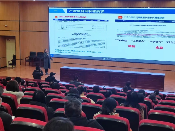 首先,礼泉县职教中心校长陈煜欢迎我院一行的到来,并对我院在咸阳市创建国家产教融合试点城市的关键时刻提供的支援与帮扶给予了高度的赞赏与评价。其次,段文洁副院长为职教中心全体教职员工作“产教融合、校企合作”专题报告,段文洁副院长从产教融合要求与现状、思路与举措、探索与实践三方面,通过真实案例分析,介绍了我院在校企合作方面的经验和做法,为职教中心在校企合作方面提供了经验借鉴。随后,刘军旭书记一行4人查看了解礼泉职教中心工业机器人实训室,与实训管理人员、专业教师及现场实习学生进行了互动交流,向他们介绍了我院在实训室建设、实训教学方面的一些经验和做法。最后,召开了机电技术专业(工业机器人方向)建设研讨会,双方就产教深度合作、学生技能竞赛指导、专业课程建设、工业机器人技术1+X证书试点等问题展开了深入交流,职教中心相关专业教师就具体专业技术问题提出了需求,我院相关教师就具体专业问题进行了积极有效的沟通与交流。