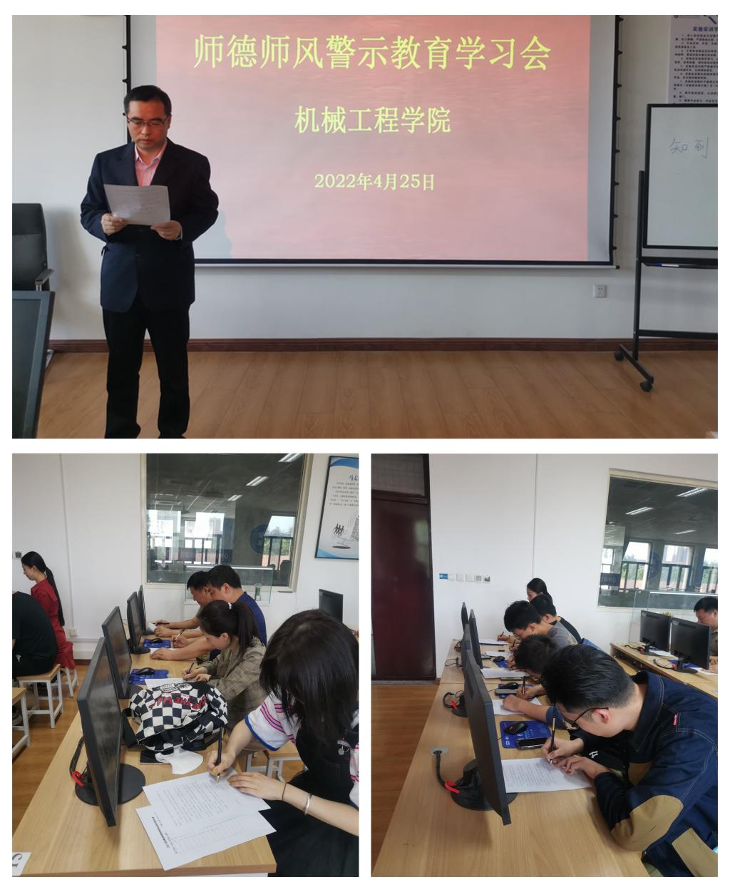 为进一步规范教师履职履责行为,持续强化教师思想政治和师德师风建设工作,认真落实《教育部关于建立健全高校师德建设长效机制的意见》《中共中央国务院关于全面深化新时代教师队伍建设改革的意见》《新时代高校教师职业行为十项准则》等文件精神,4月25日下午,机械工程学院党总支在精艺楼2005组织全体教师开展师德师风警示教育活动。会议由党总支书记苏宏志主持。