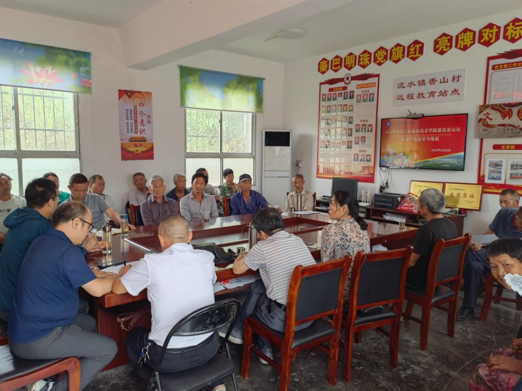 乡村振兴,产业振兴是关键。为提高香山村油茶产业园“油茶高产栽培与管护技术”水平,6月22日,我校邀请三位农技专家鲁周民、杨培华、杨芳霞在中国林科院亚林所高产油茶示范基地(香山村油茶产业园)举行油茶产业培训与指导活动。香山村油茶种植户代表、村民代表、瀛湖沿线油茶种植大户及香山村“四支”队伍成员等近30余人参加了此次培训活动。