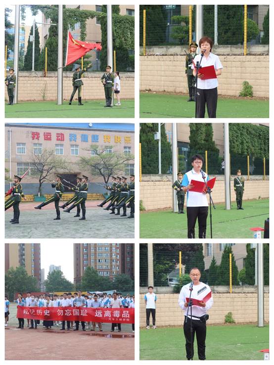 2022年6月26日是第35个国际禁毒日,为做好宣传教育工作,提升青少年识毒、拒毒、防毒的意识,引导同学们树立正确的人生观和价值观,6月27日上午,汽车工程学院在操场举行“铭记历史,勿忘国耻,远离毒品”主题教育活动。汽车学院党总支书记高亚宁、团委书记赵双军、学院副院长许冀阳、实训办公室主任朱辉、学工办主任王禹程和全体辅导员及学生代表参加了此次活动。
