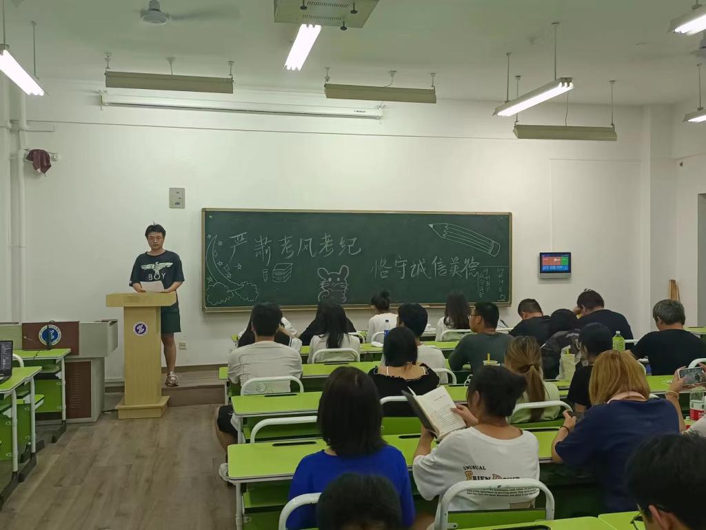为严肃考风考纪,落实学校关于加强学风建设的要求,培养学生诚实守信的优良品德,树立正确的价值观,2022年6月27日,信息学院学院团总支、党小组学生干部组成的“信息学院新时代大学生宣讲团”在晚自习期间在学院各班召开“严肃考风考纪,恪守诚信美德”主题宣讲会。