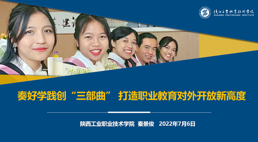 受中国教育国际交流协会邀请,7月6日,我校国际教育学院院长秦景俊为参加2022年首期院校国际发展能力提升项目的学员做专题讲座。讲座以《奏好学践创三部曲,打造职业教育对外开放新高度》为题,从职业教育对外开放政策解读、实践探索、体会与思考三个方面,分享了我校职业教育对外开放的理论探索与实施路径。
