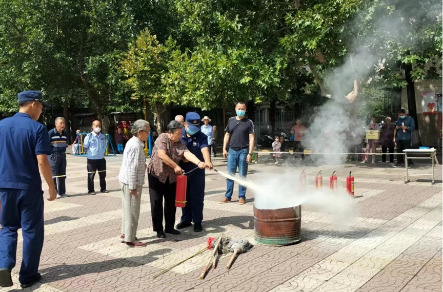 为进一步加强我校社区居民的消防安全意识,提高火灾的应急扑救处置能力,确保社区居民的生命财产安全。7月20日上午特邀咸阳市渭城区消防救援大队在学校家属区同乐园广场开展了消防演练活动,保卫处、离退处(社区)组织居民家属参加了活动。