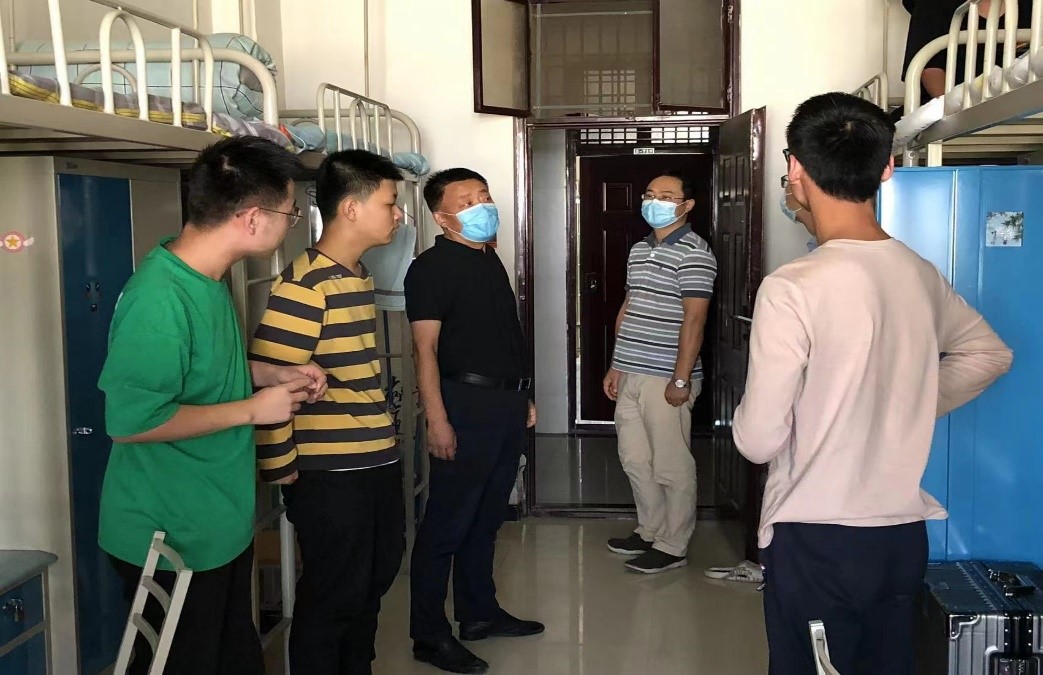 走访过程中,韩伟书记对同学们就疫情管理期间提出了明确的要求:一是要心存敬畏之心,严格遵守学校规章制度,严禁翻院墙、点外卖、夜不归宿等违背疫情防控的行为再次出现,筑牢疫情“防控网”;二是面对网络舆情,要明辨是非、谨言慎行,不信谣、不传谣、不造谣,筑牢思想防线;三是要求学生要逐步提高自理、自立的能力,叮嘱新生们要尽快调整作息,积极调整心态,尽快进入学习状态。