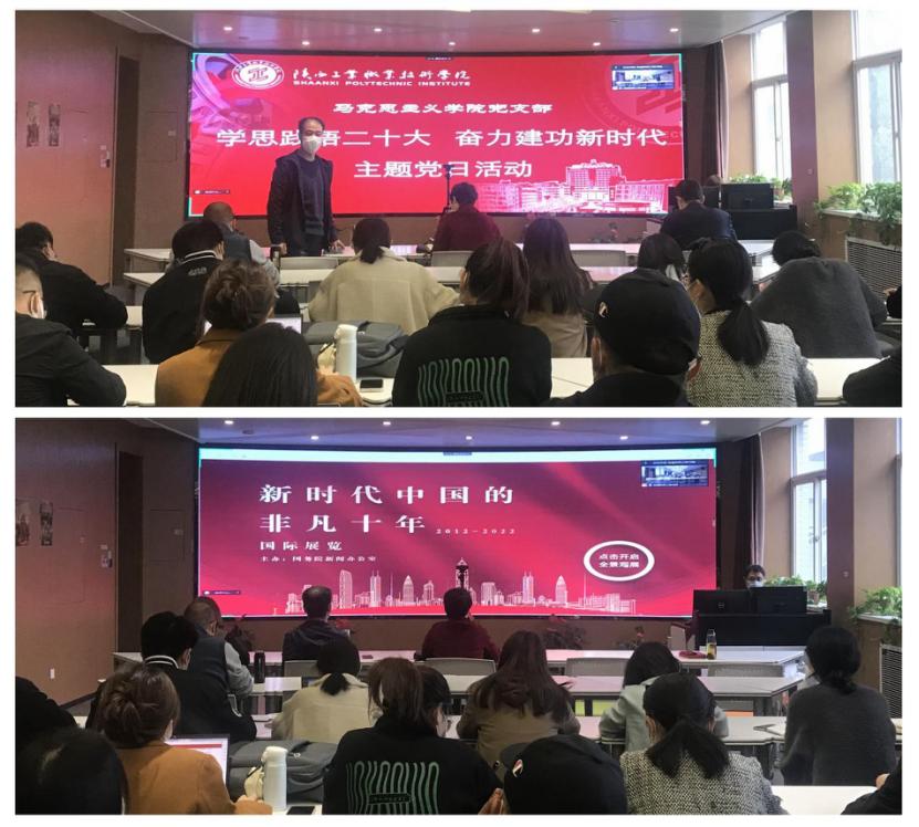 活动中,全体党员首先集体观看了央视《焦点访谈》系列报道“奋斗 新的伟业”之“非凡成就 伟大变革”,认真学习了中共中央党史和文献研究院院长曲青山、中共中央政策研究室主任江金权、中央纪委国家监委宣传部部长王建新三位专家关于二十大胜利召开的重要现实意义和深远历史意义解读,了解了党和国家过去五年的工作和新时代十年的伟大变革。
