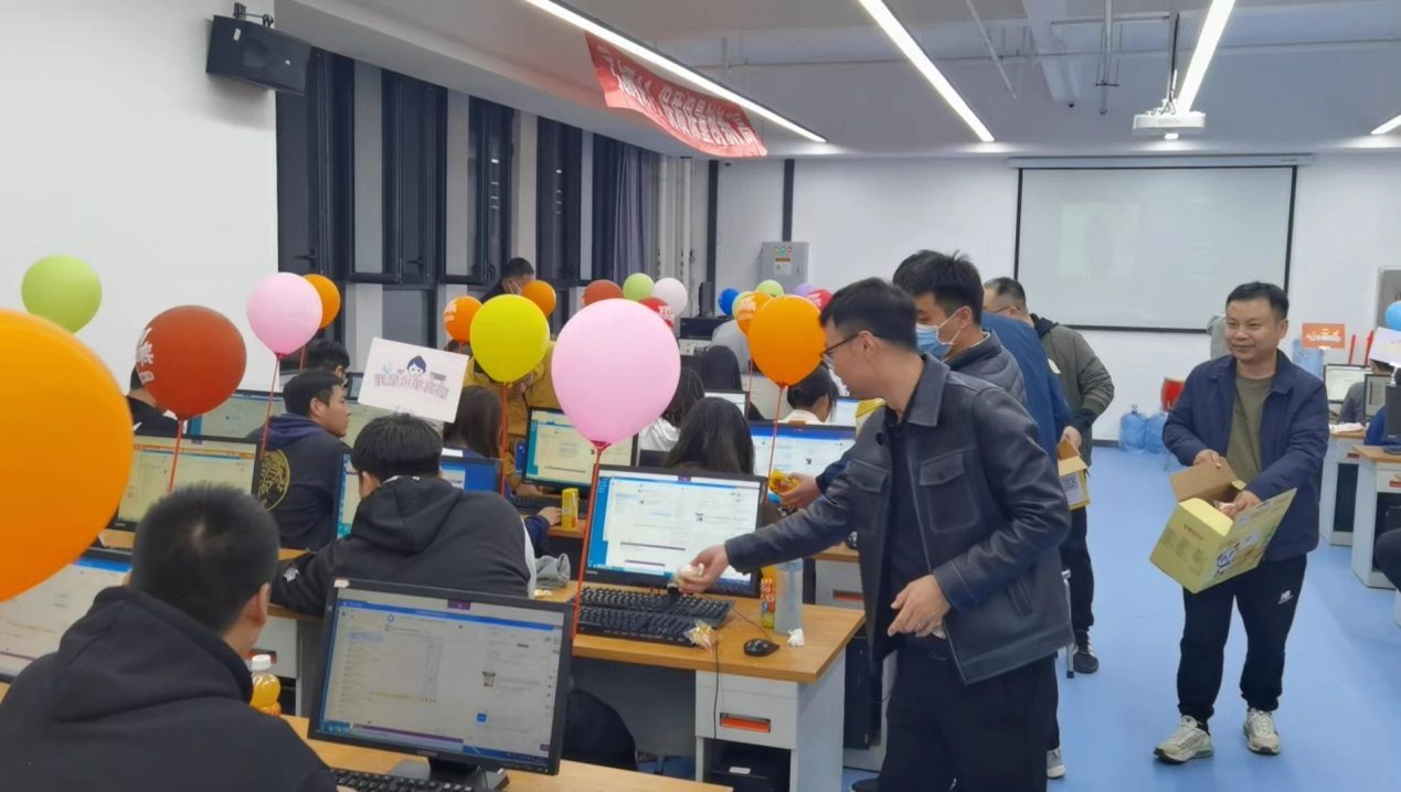 实训中心主任杨涛、学工办主任成志平及实训中心成员也对实训室的安全、卫生以及学生管理工作进行了全面检查,并要求本次实训值班老师及企业驻院导师负起责任,认真管理,重点关注实训安全、疫情防控和实训学生心理健康,保障本次双十一实训圆满完成。
