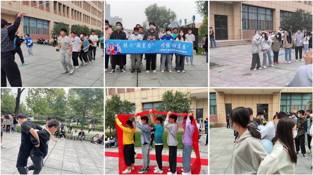 主题活动有目标。围绕宿舍人际关系和个人心理调适两个方面开展了“提升凝聚力,增强归属感”和“健康趣味运动会”为主题的心理健康团建活动。通过开展丰富多样的体验活动,增强学生之间的积极互动,引导学生建立新的人际连接,正确处理以校园为生活场所的各类心理障碍。从而提升学生的应对能力,传递积极进取、乐观向上的生活态度。