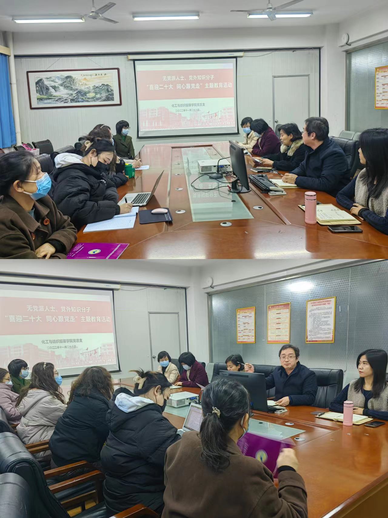 根据《陕西省无党派人士、党外知识分子“喜迎二十大、同心跟党走”主题教育实施方案》要求,11月28日下午,化纺服学院党总支在崇文楼811会议室开展无党派人士、党外知识分子“喜迎二十大、同心跟党走”主题教育活动。活动由化纺服学院党总支书记贾格维主持,学院院长王化冰、教师支部书记刘迪、教师支部委员以及学院无党派人士、党外知识分子代表参加活动。