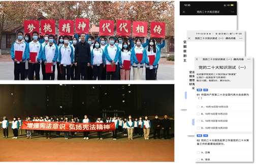 ——在抓实思政教育上再发力,守牢意识形态阵地。全面落实意识形态工作责任制,牢牢掌握党对意识形态工作领导权,用党的二十大精神统一思想、凝聚共识,巩固壮大主流思想舆论。一是打造“党总支+党支部+宿舍党小组”三级党建架构,把党小组建在学生宿舍里,引导辅导员、专业教师下沉到学生中间,将学生宿舍打造成为学生党建前沿阵地,将思想教育工作渗透到学生宿舍管理、服务、自治等方面。二是用好党课载体,发挥党课“大作用”,坚持以问题为导向,结合学生教育管理实际,对学生进行理想信念、爱国主义教育,聚焦发挥党的二十大代表作用,大力弘扬“梦桃精神”,将党课讲深、讲透、讲实,教育学生立志做有理想、敢担当、能吃苦、肯奋斗的时代好青年。三是借助网络信息技术学党的二十大精神。推出“党的二十大知识线上答题“,掀起学习热潮,引导青年学生深刻领悟“两个确立”的决定性意义,增强“四个意识”、坚定“四个自信”、做到“两个维护”。四是以宪为航,与宪同行,开展“增强宪法意识、弘扬宪法精神”国旗下主题教育活动,教育和引导青年树立正确的法律观念,弘扬宪法精神,踔厉奋发、勇毅前行,为中国式现代化建设挥洒青春汗水,奉献青春力量。