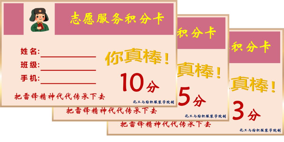 固化长效机制,将雷锋故事“传下去”。总结以往开展雷锋活动的经验与做法,探索“党员+志愿服务”模式,设置学生党员志愿服务清单,组织开展以校园卫生清洁、传递文明、敬老爱老、服务师生为内容的志愿服务活动,形成“月月有活动、人人都参与”局面。制作“志愿服务积分卡”,学生每次做好人好事或是公益活动可到学工办登记积分并领取活动纪念品,以此激励学雷锋做雷锋融入日常、化作经常,将雷锋活动常态化长效化,续写雷锋故事。