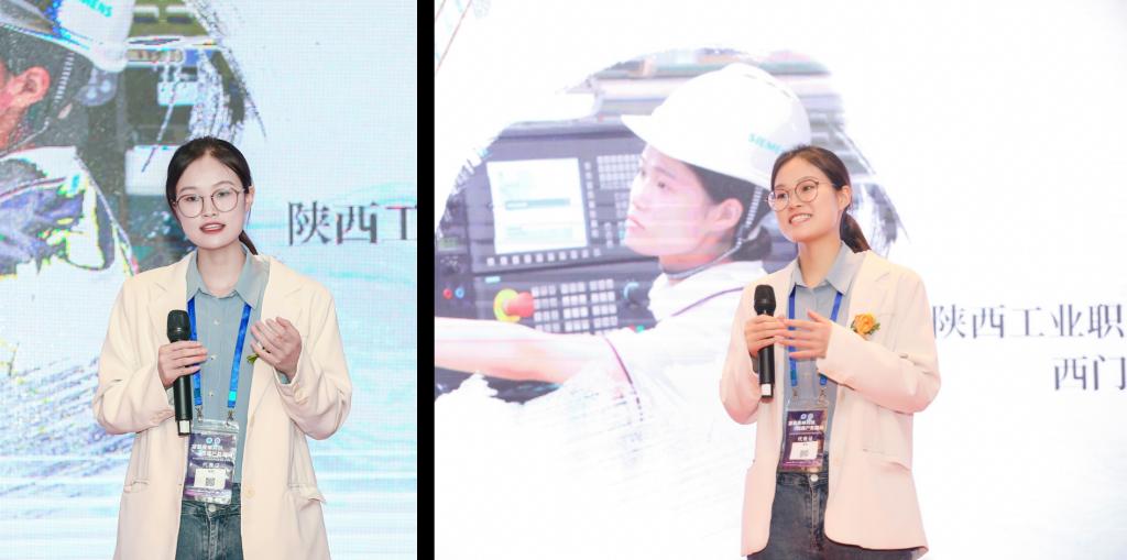 会上,耿佳分享了她在校学习的历程,以及参与西门子产业订单班的心路历程,表示要不断提升自身职业能力、职业竞争力,在职业道路上不惧风浪勇敢追梦,不断向着更高的职场跃升。2021年,西门子订单班首次在电气学院招生,经过层层筛选,耿佳成为剩余二十几位同学中的唯一女生入围,被西门子公司成功录用。目前就任西门子CSFA团队助理。