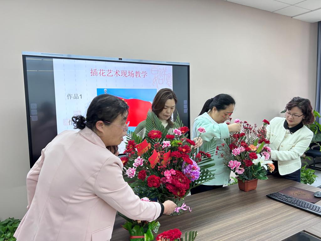 活动中,学院党总支副书记程建卫向学院全体女教师致以节日的问候和美好的祝愿,勉励全院教师要以更加饱满的热情,更加昂扬的斗志,精诚团结、踔厉奋发、勇毅前行推动学院的进一步发展。随后学院领导为在2022年度获得国家级、省级奖项的优秀教师代表献上鲜花进行表彰,随后邀请了旅游管理专业教师张敏娜老师为大家讲解中国传统花文化和插花艺术,大家在张老师的精心讲解和指导下,充分发挥自身的创造力和想象力,认真挑选,精心构思,经过一个多小时的亲手实践,三件高低错落、疏密有致插花作品在女教师手中诞生,每一件都独一无二,每一件都绚烂多姿,它们承载着财经学院全体教师对党的感恩之情、对国家、对学校的美好祝愿。热情的笑脸与盛开的鲜花交相辉映,整个活动现场洋溢着热烈欢快、积极向上的气氛。