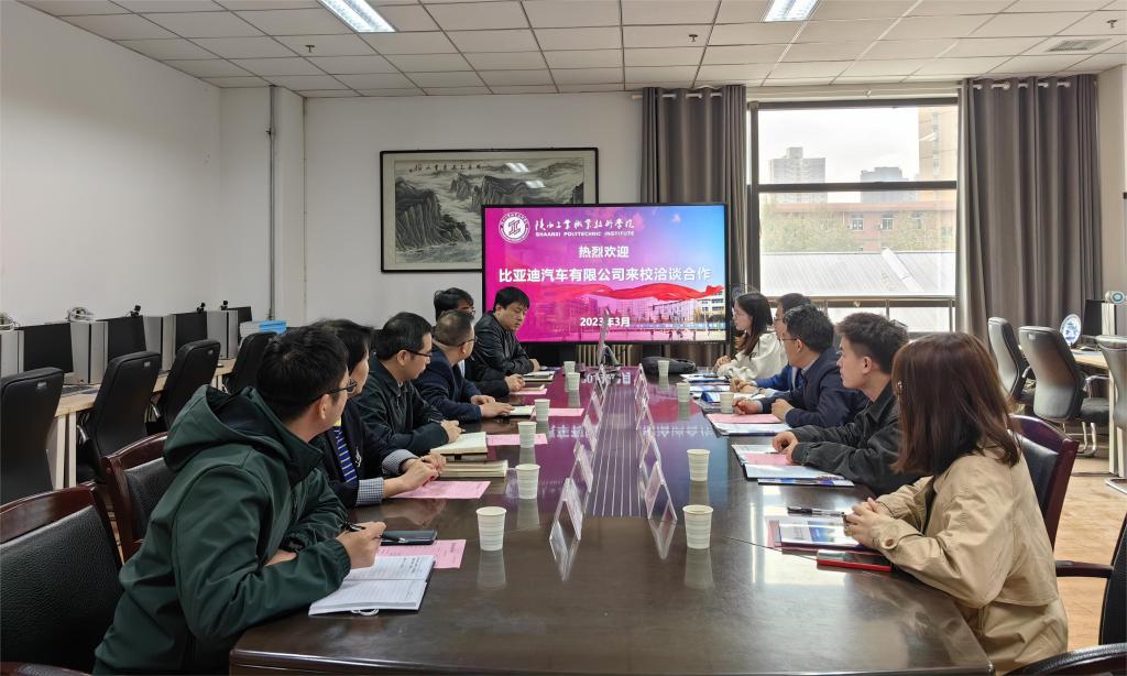 3月31日上午,比亚迪汽车有限公司西北区域人力资源部副经理杨涛一行来我校交流工作。我校校企合作处副处长刘其兵、机械工程学院党总支书记苏宏志、航空工程学院党总支书记刘军旭、汽车工程学院党总支书记高亚宁等同志在精艺楼二楼网络招聘室与来访人员进行了交流座谈。会议由校企合作处副处长刘其兵主持。