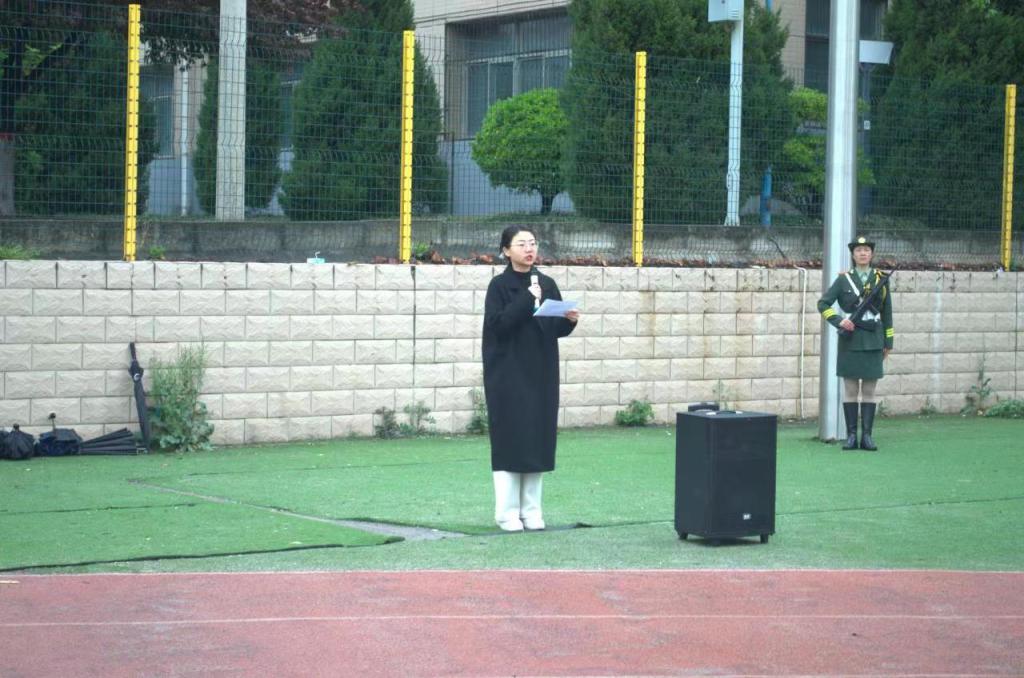 升旗仪式结束后,学生代表室内设计2202班李东阳作了题为《缅怀先烈传承不朽》的主题演讲。她表示当代青年应该如同革命先辈一样,将矢志不渝的精神寄托在学习当中,珍惜时间、努力学习、健康成长,用才智和热情,让先辈们奋斗的轨迹在当代青年的拼搏中无限延伸,让国旗更鲜红、五星更闪亮。